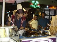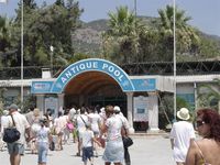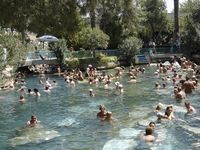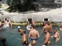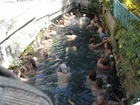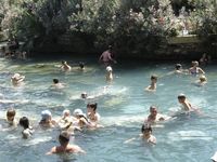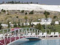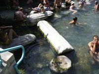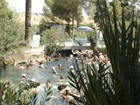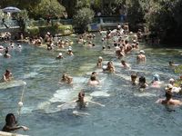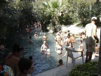 Ide bementünk, tele volt turistával, egy asztalnál letáboroztunk, az id.vez ott maradt a cuccokkal, itt lehetett átöltözni a mészkőteraszokhoz való ruhába, naná, fürdőszerelésbe, vagy a termálba, szintén fürdőszerelésbe.