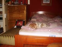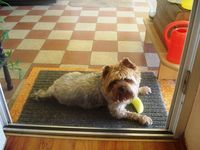 Ui: Geó megázás és reggeli utáni pihenőn! :) Kivételesen sétált az esőben.
