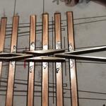 Én Tillig Standard (ex Pilz) váltókat vettem építőkészletben, idáig hármat, alapjában véve nem lenne vele baj, de a csúcssínek rögzítését nehéz jól megoldani. A csúcssínek alján vannak kis csapok, az egyik a talpfarácson a szív felőli furatokba megy, a másik pedig a mozgató rúdba, a csapok vége be van mélyítve és egy pontozóval kell szétütni, hogy a perem kitáguljon és a helyén tartsa a csúcssínt, de tudjon mozogni. A probléma fő forráspontja szerintem, hogy a csapok nem a csúcssín hossztengelyén vannak, hanem oldalra tolva, így mikor a pontozóval ráütök ki akar fordulni a helyéről, második próbálkozásra már jobb lett, akkor egy hajlított végű kis fogóval hozzáfogtam a sínszálhoz a csúcssínt, miközben a maradék két ujjammal a pontozót egyensúlyoztam a helyén (a másikban kalapács volt ugye), és tettem mindezt vaslemez híján egy nagyobb kalapács fejének oldalán.
