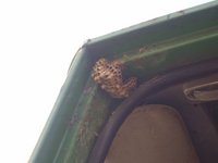 Kedves Fotós kollegák! Engedjétek meg nekem egy percet, hogy felhívjam a figyelmeteket egy ránk leselkedő veszélyre ami főleg így a szép nyári idővel ezentúl hatványozottan elő fog fordulni. Az utolsó képre gondolok így konkrétan. Ha mostanság valami velünk pusztuló roncs felé közeledtek, belsejét fotózzátok, teszem azt ajtaját csapdossátok, előtte mindig nézettek körül, hogy a résekben, hajlatokban nincs-e véletlenül darázs fészek! Nekem ma szerencsém volt ez lakatlan volt, de lehetett volt esetleg rosszabb. És a darázscsípés nagy mennyiségben halálos is lehet! Szóval óvatosan, kellő körültekintéssel kattintgassatok! üdv Jani
