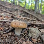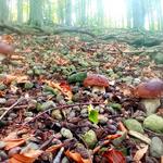 A múltkori túrán felbátorodva megcéloztam a magasabb régiókat. Ez a hely tavaly júniusban szépen muzsikált, 700 m körül, ÉNY jellegű tájolással. Két óra hegymenet után majdnem agyvérzést kaptam, amikor a szupertitkosnak vélt helyemen egy terepjáró állt az erdő közepén. A gazdája egy erdész volt, aki már épp indult, a kabátzsebében 6-8 db vargányával. Mondta hogy "hát, a meredeket itt már megszedtem, de talán nem vettem észre párat". Szerencsére kiderült, hogy eltérő elképzéseink vannak a meredekség fogalmáról, nekem azt jelenti, hogy 2 túrabot segítségével is kihívás rajta járni, de még nem függőleges. Mivel ő csak a felső lankás 10 m-t szedte, nekem maradt a zsákmány zöme. Vörösbarna dömping, ízletesek, néhány nyári. Főleg fiatalok. Utána megnéztem egy ismert helyet a közelben, de ott nulla találat, meg egy másik, számomra új hegyoldalt, ami jóval lankásabb de erősen köves volt, 600 m körül, szintén ÉNY tájolás. Volt rajta 2 nyári meg egy 4-5 db ízletesből álló csoport, és egy maréknyi trombita, sok öregecske őzláb. Fölfelé menet ránéztem egy ismert trombitás helyemre tölgyesben, de még üres volt, gyertyánosban már láttam trombitakezdeményeket, de még nagyon aprók voltak. Gyűrűs tuskó sem mutatja magát. Szerintem lehet még remény, de valamiért ezek a brutál hegyoldalak játszanak, 45 fokosnál lankásabbon nem találtam mennyiséget, csak néhány random példányt. Ami betehet a hullámnak az a hideg és a szél. Rohadt hideg van, kellett a sapka és a kesztyű, a faluban a helyiek azt beszélték, hogy jég volt a szélvédőn reggel. A szél is erős, ezért talán a védettebb helyeken tarthat ki a vargánya, ott ahol egy völgy vagy némi cserjeszint megfogja a szelet, de kell valami lomb is fölé, hogy ne fagyjon el hajnalban.