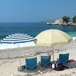 Ha elmegyünk fürödni, akkor napernyőket célszerű vinni ugye? Vagy találunk ott olyan részt, ahol lesz egy kis árnyék is? Alapvetően olyan partszakaszokat keresünk és találunk, ahol a part közelében vannak fák is, így nem nagyon ernyőzünk.