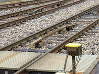 Stimmel, nem volt egészen véletlen, csak az ok-okozati összefüggés helytelen :) A képen jól látszik a jelző visszaejtésért felelős tengelyszámláló (sárga doboz). A krokodil meg természetszerűleg a jelző környékén van. Működése igen egyszerű: a felette elhaladó jármű alján elhelyezett csúszóérintkező végigcsúszik a krokodil hátán (ekkor van a csattanás), és az így létrejött kontaktuson +/- 20V= feszültség jelenik meg a jármű felé. A járműfedélzeti egység aztán ennek megfelelően kongat. Igazából ez nem is vonatbefolyásoló, hanem csak egy figyelmeztető rendszer mert a beavatkozás nincs nagyon túlspirázva...