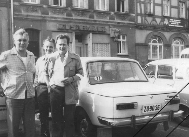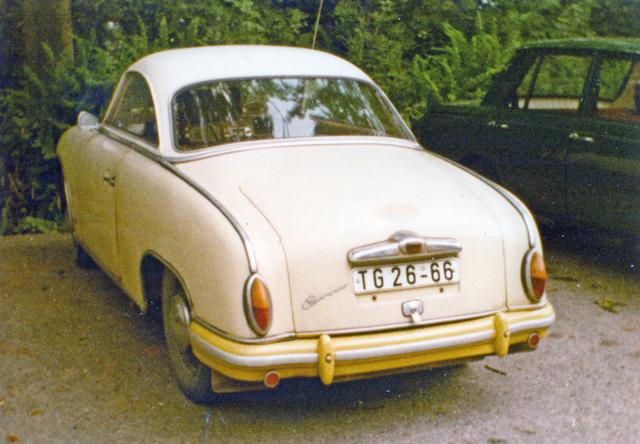 Itt egy másik kép és másik Wartburg , a hátsó szélvédőn lévő matricák mennyiségéből ítélve valószínűleg ez is átrendszámozott lehetett . Brno 1959 július vége :