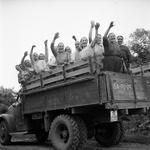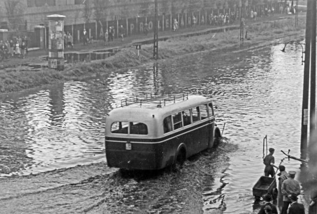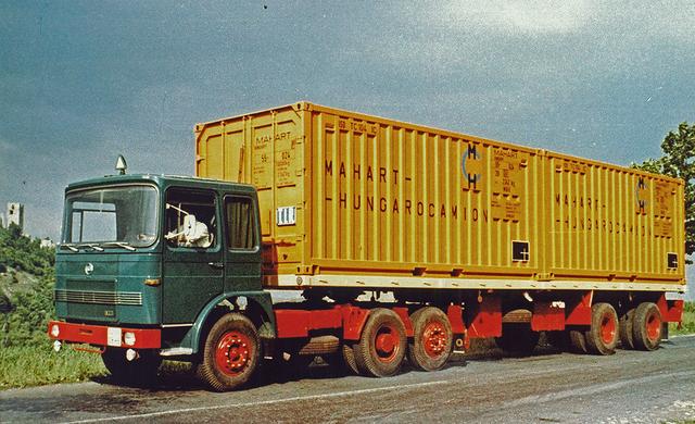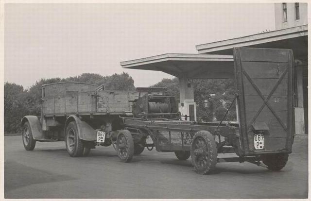 Tiberius kolléga úr kiválóan levezette az '53-as KRESZ (1/1953 (XII.4.) BM r.) előtti rendszert. Az '53-as KRESZ írja elő a pótkocsik önálló rendszámozását, és több pótkocsit üzembentartóknak kérésre innentől engedélyezhető a pótkocsik több járművel való vontatása. A kép szerintem 1954-es, amikor MÁR a rendszámot fel kellett festeni a tgk-k és a pótkocsik hátfalára, de még nem volt minden pótkocsinak saját rendszáma.