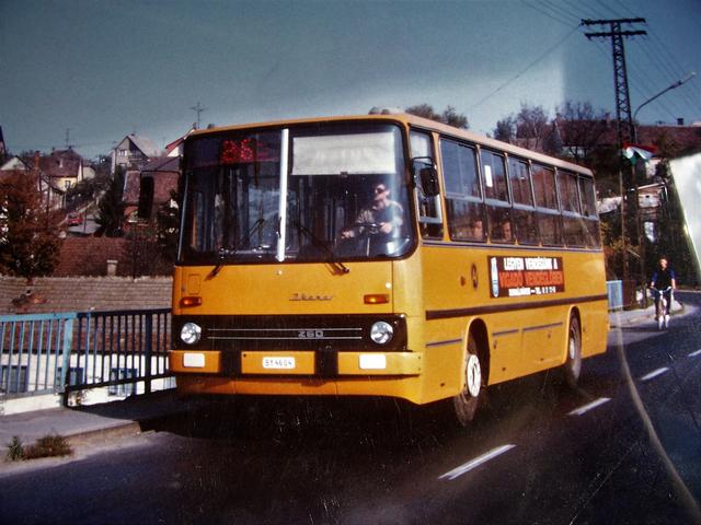 Hősünk kiállt a csillogó-villogó, tiszta kb. 6 éves Ikarus-255 autóbuszával.