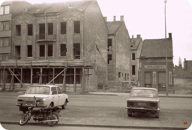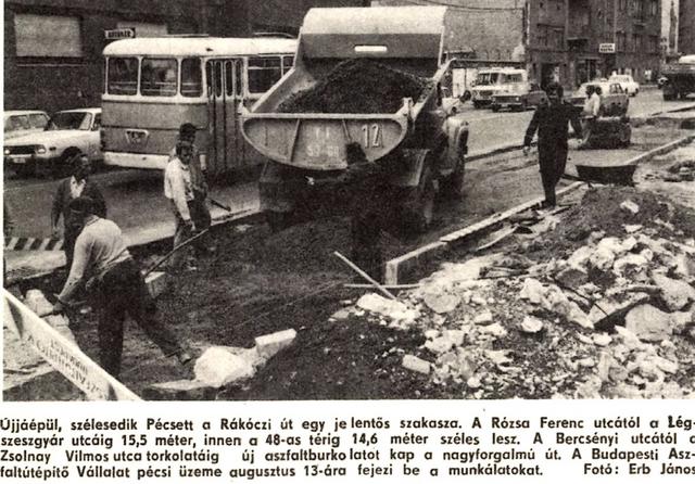 " Újjáépül, szélesedik Pécsett a Rákóczi út egy jelentős szakasza." - kezdődik az 1977-ben készült képriport. (Csak annyi magyarázat, hogy a Rózsa Ferenc utca a mai Alsómalom utcának felel meg.) Forrás: Dunántúli Napló 1977.08.03. " f:regipecs