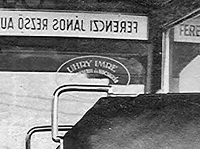 Szabadjon beleokoskodnom egy csöppet. A feltett kérdésre persze nem tudom a választ. De arra szavazok, hogy a külső és belső kép ugyanazt az Uhry-féle kocsiszekrényt mutatja. A belső kép szerintem így helyes. A szélvédő fölötti ablakokon kívülről olvasható lehetett a felirat. Vélekedésemet az is alátámasztja, hogy a kép közepén levő stempli így olvasható.