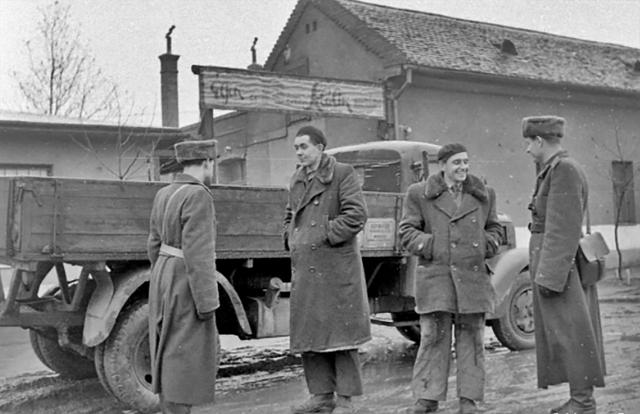 FH 161-nek vélem. Az Opel Blitz biztos. A tulaj adatait nem tudom elolvasni. Az utolsó képen a rendőrrel vihorászó hapsin vasutas bunda van. Annak idején ilyenre vágytam, de csak hosszú sofőrbundám volt.