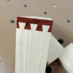 - hármat felvágsz 3 x 54 mm-es csíkokra az 9 csík, négy csíkot összeforgatva és ragasztva megvan a 4 db 50x50-es láb max 1 m magasságig, a maradék ötből kettő elmegy a középső merevítőre kettő meg az ágyrácstartónak. A maradék 1 db az a hátsó felső díszcsík.