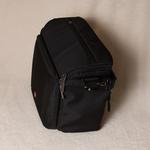 További megjegyzéseim a képekhez: A csaton van némi festékleverődés (már a boltból is így hoztam el újonnan, de ez mindegy), ez látszik a harmadik és negyedik képen. Varrónővel csináltattam hozzá mikroszálas anyagból egy tenyérnyi méretű "takarót", amivel megvédhető a váz kijelzője a fölötte futó fedetlen cipzártól. A takaró az egyik szélén tépőzárral rögzül. Ez látszik az ötödik képen. Az elülső rekesze (hatodik kép) nagyon keskeny és merev falú, vastag tömött "buksza" nem biztos hogy belefér, de iratok, akkumulátor, telefon, memóriakártyák igen. Az utolsó képen látszik, mennyire lóg ki felfelé (még éppen semennyire) a Nikon D750 + N 24-70 f/2.8G ED.