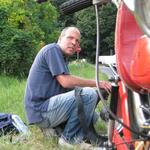 az első pihenőnk Vértesboglár után a 811 es útnál lévő benzinkútnál volt ez így egy jó hosszú menet volt egyben, motorok bírták nem volt velük gond és mi is bírtuk nekem például a R12 nagyon kényelmes nem fáradok el, a következő pihenő már kényszerből jött Bicske és Mány között lévő emelkedő megfogta a 12 est , a karbik forralták a benzint,a déli kánikula nem kedvezett a motoroknak, a blokk tűz forró, mivel kb fele úton voltunk és emelkedő is lesz még bőven, így megegyeztünk hogy vissza fordulunk, a vissza út sima és zökkenő mentes volt talán kétszer ha megálltunk, ha már így alakult valamivel feldobjuk a napot Velencén a Gajdos büfében egy jót ettünk majd Pákozdon fagyiztunk, így telet ez a túra, egy jó motorozás lett belőle. A motorok hibamentesen mentek még egy gyertyaslusz se volt megvagyok elégedve,csak emelkedő ne lenne.