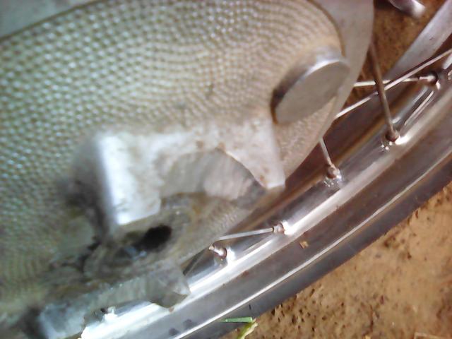 Egy hiányosságot fedeztem fel a motorodon: a sárvédő tartópálcáinak a végénél egy félkör profilú lemez szokott lenni, mindkét csavarral felfogatva az is az aluöntvényre - ez tartja egyvonalba a két pálca végét, enélkül el tud fordulni, hátra tud csúszni a sárvédő. Legalábbis a Verhovináknál ez így van, gondolom, a Kárpátinál is megmaradt ez a megoldás.