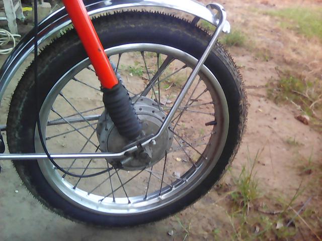 Ha jól látom, az elsőfék bovdenjének normális elvezetése miatt van fordítva beszerelve az első kerék. Majd teszel fel erről is képet? Meg a reflexrugós markolatváltóról is?