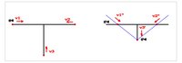 A merőlegesen haladó lövedék nyugalmi rendszeréből a jobb oldali ábra szerinti állapotot rögzíthetik a megfigyelők. Ide berajzoltam a két "szemben haladó" lövedék nyomvonalát is. Mivel most az utak rendszere mozog v3 sebességgel, ezért csak az ennek a sebességnek az irányában van kontrakció és az út vonalában egy későbbi időpontot mutatnak az út rendszerében elhelyezett órák mint a nyugvó lövedék mellettiek a nyugvó lövedék rendszeréből vizsgálva.
