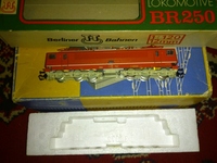 Eladó BTTB BR 250 a ritkább, narancsvörös (orange) festésben, eredeti dobozában. Pár pici sérülés van rajta: az egyik forgóvázmaszk sarka picit le van pattanva (lásd képek), és az egyik kürt utólagos ragasztása miatt nagyon pici ragasztónyom található.