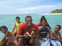 Aztan mikor mar nagyon untam a fuggoagyat meg Fongafalet (ez Funafuti atoll fo szigete), akkor szerveztem egy kis hajokirandulast a laguna tuloldalan levo motukra: