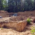 A kép bal szélén letakarva félre van téve a lelet. Most semmi nem látható belőle, de ha megcsinálják az egészet a turistáknak bemutatásra (templom falai konzerválva+ bemutatóépület) akkor biztosan érdemes lesz felkeresni a helyet!