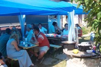 (menű: pohár ital, pikáns gulyás 10 főre, pincegulyás 10-15 főre, halászlé 10 főre, pohár ital, kávé és valami süti* majd dumaparti)