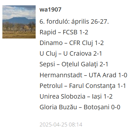 A rájátszás 4. fordulójában szerzett pontok: 1. orok meggyszin 19p 2. bendeguz90 16p 2. zsolyika 16p 4. wa1907 14p 5. luisharcsa 13p 6. Bzzzzz07 8p
