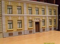 Több helyen ajánljátok a sztirol lemezt. Ez az épület is abból készült és valóban jó anyag. Az alap viszont habosított PVC. Ezt ismeritek? Szerintem sokkal könnyebb vele dolgozni. Nekem csak egy 3mm-es vastagságú darab volt belőle, de elvileg létezik ebből vékonyabb is. Van valakinek hosszabb távú tapasztalata ezzel az anyaggal?