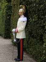 A sövényekben fülkeszerű kivágással szobrok állnak, gyakran hétköznapi emberekről formázták őket. A Kávéház, a labirintus valamint a Fontana Orgona és a Szarkofágok útja is elkerített, tisztes távolból nézhetjük és fotózhatjuk. Amolyan pick-nick hangulat van a fák árnyékában- szobrok, virágtartók és kutak tövében hűsölve ücsörgő emberekkel. Népszerű a díszes egyenruhás jellegzetes hosszú lófarkas süvegben álló őr, sokan állnak mellé egy-egy fotó erejéig.
