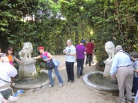 Megnézzük Borromini márványból készített napóráját, a változatos szökőkutaknál (van itt 4 oroszlán, sárkány, delfinek és teknősök, a pápai címer mozaikját mintázó vagy a medence közepéből kiemelkedő női alakos kút ) próbálunk pózoló látogatóktól mentes fotót készíteni és Hadrianus császár is visszaköszön mellszobráról.