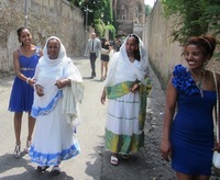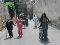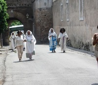 Bár, szeretnénk megvárni a násznépet és a menyasszonyt, de még szieszta előtt látni szeretnénk a S. Clemente templomot, így elindulunk. Külön ajándékként megkapjuk a velünk szembe jövő násznépet. Különleges frizurájuk és népviseletük alapján Catella etióp származást sejt. Míg a fiatalok finom anyagból készült elegáns és merész, rendkívül dögös ruhában vonulnak, az idősebbek különleges népviseletet öltöttek. A férfiakon is elegáns öltöny van. Ritka alkalom, hogy ilyet látok, így sűrűn kattog is a gépem.