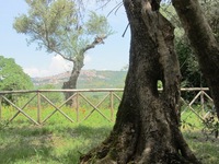 A Villa területén belül a kis fürdőhöz közel, és a gyönyörű pínea-sétány oszlopmaradványai közelében is láttam az éppen virágzó akhantuszt, pipacs szétszórva mindenütt finoman színesítette a látványt. Az épületek formák, oszlopok és mozaikok mellett szerettem a fák változatos formáját. Sok-sok jelet viseltek törzsükön, mind a kor + természet által törzsükbe mart terhükről árulkodott.