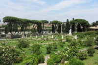 Ezen a helyen egykor a római zsidó közösség temetője volt, a felső kert bejárata melletti héber feliratos oszlop, és a parcellák közötti járdák menorát (hétágú gyertyatartó) formáznak. A kert egy természetkedvelő gazdag olasz amerikai feleségének ötlete alapján nyitott meg a temető átköltöztetését követően. Talán a szívet formáló lugast is neki köszönhetjük.