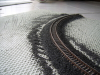 A vágányzat nagyon tetszik! De a töltés nem laposka egy cseppet? Pláne ha a téma az erdő, ahol talán még jellemzőbben megtalálhatóak a töltés melletti víz elvezető árkok.
