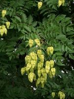 Párom járt arra mostanában, és azt mondja, hogy most valami termések vannak rajta. Olyan alakúak mint a naspolya, de üresnek, felfújtnak tűnik messziről, és fürtökben lógnak...