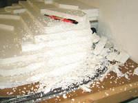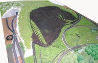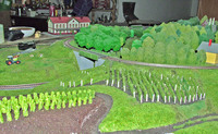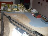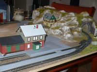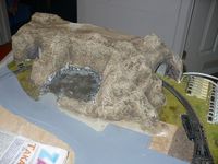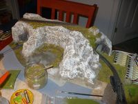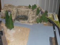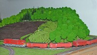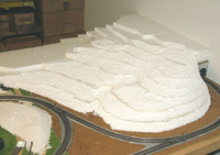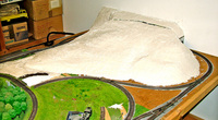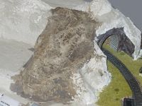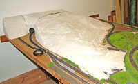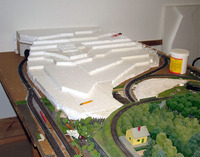 A nagy építkezési kedv engem is elkapott. Az én hegyem így készült. Az alap hungarocell. A burkolat gipszháló (baleset sebészet). Festés: akril hobby festék (stone árnyalat), némi pigmenttel variálva (cseh zöld föld, égetett umbra és fehér). A fű Noch köves hegyi kivitelű. A hegytetőn egy képzeletbeli pályaszakasz látható, amelyen természetesen nem lesz forgalom, de vagonok átmeneti tárolására alkalmas. A fák még később jönnek, az épületek sincsenek rögzítve. Egyenlőre itt tartok. Építő jellegű kritikákat szívesen fogadok. :-)
