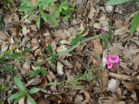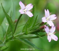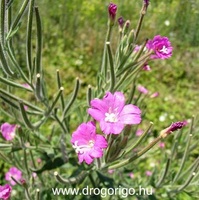 Lágyszárú növény, olyan fél méter magas. A levelei keresztben átellenesek, épek, hosszúkásak, a szélük kicsit fogazott. A szár elágazásai szintén keresztben átellenesen állnak, jó nagy pálhalevelekkel a tövükben. A virág szép világoslila, körszimmetrikus. Négy szirom van, de mindegyik közepén van egy kis bevágás, szívhez hasonlóan, úgyhogy úgy néz ki, mintha nyolc lenne. Négy keskeny barnás csészelevél van. A bibe kereszt alakú. A szirom töve fehér, kívül lilás. A virágok egy részének már jól meg volt nyúlva a nyaka. Feljebb már csak termések látszottak, kicsit befelé görbülő hosszú (kb 5 cm) kb 1-2 mm vastag hüvely vagy mi.
