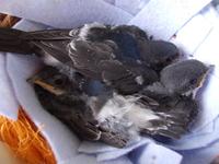 Ám nem telt el sok idő és már megint fogadott "gyerekeim" vannak, Ócsára bevitt valaki 3 pici molnárfecskét mert megsemmisült a fészkük, és elhozták nekem nevelni. Ilyen még nem volt, egy egész fészekaljat még sosem neveltem :-) De már túl vagyunk 2 etetésen, teljesen ugyanúgy kell őket etetni mint anno a kis nevelt sarlósfecskémet így ismerős a helyzet. Remélem szép nagy egészséges madarak lesznek belőlük, a kukac mellé tervezek nekik vitaminos vizet is adni.