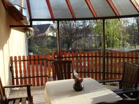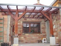 Polikarbonát mostanánban igen népszerű. állja a telet, megszűri az UVt, van aki télikertet is be tud rendezni alatta. Ugyanakkor felmerülnek az üvegházhatásra jellemző problémák is, nyáron nagyon meleg lehet alatta.