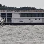 Újabb foil próba volt, ugyanolyan NP Glide Wind foil (small), mint Petinek, ez viszont egy szélesebb deszkában. Nekem a normál (freestyle) deszkás foil jobban bejön, azaz inkább csak az jön be egyelőre.