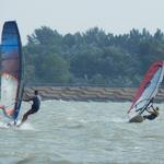 Értékelhetőt nem. 8+ m2-ekkel néha-néha siklottak páran, ha épp elkapták a megfelelő pöfföt, de random a vízre nézve általában mindenki állt. Úszni viszont jó volt, nem kellett félni, hogy bármelyik szörfös átgázolna rajtam (merthogy max. billegtek ahol voltam, vagy máshol haladtak), és a DNY-i szellő által felépített hullámzás is kellemes változatosságot jelentett.
