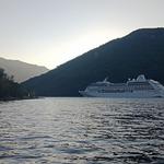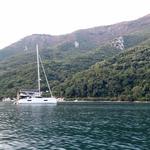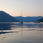 Reggelente gyakorlatilag simán ki lehetett az öbölrendszer mélyéről jutni a nyílt tengerre úgy, hogy 2-3 hajónál többet nem láttam a vízen. Érdekes élmény volt ennyire egyedül lenni ekkora víztesten. Sőt, valahol kimondottan vicces volt, hogy a korai órákban inkább csak az öbölbe szinte cipőkanállal behajtogatott, óriási tengerjáró hajók jöttek szembe a mellettük eltörpülő 3.2 méteres gumicsónakommal, hogy délelőtt már a többszáz turista a hajó gyomrából szétspriccelve a kotori óvárosban szórja a Eurót, illetve a Kamenari-Lepetani szakaszon közlekedő kompok keresztezték csak utamat: