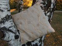 Hogy ne legyen ilyen csupasz a topik,berakok egy képet az egyik díszpárnánkról,ami nyers lenvászonra készült a dédi csipkegallérjából,és egy olyan természetes szálból sodort fonalból,aminek fogalmam sincs,mi a neve.Nem is nagyon látok ilyet mostanában,10 éve vettem egy nagyobb adagot,mert azt mondtaák,később nem lesz.Ha valaki tudja,hogy mi ez és lehet-e mégis kapni,szóljon!