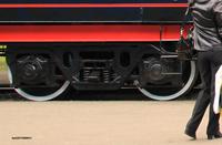 Még egy kis adalék ahhoz a caboose-forgóvázhoz. Nézzük csak a kinagyított képrészletet - na nem a hölgy fenekét, hanem a forgóvázat. Van kötvas, van ágyvezetéknek tűnő dolog az ágytok két oldalán, pedig nem ágyvezeték. Az ágytok mereven támaszkodik a forgóváz hossztartó lenyúló ütközőjére. Az "alany" egyébként az offtopic L-2057 gőzmozdony szerkocsijának a futóműve. (Megnéztem egy másik, nosztalgiaüzemben lévő, szintén aránylag magasabb pályaszámúét, és ugyanilyen. A prototípusé másfajta, de kötve hiszem, hogy az eredeti futómű van alatta.)
