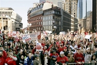 Varitek a Bostoni paraden. ...hogy milyen feliratu tablat tart a kezeben, azt hiszem ez megnyugtato;) (Resign LOWELL, ha nem lehet elolvasni)