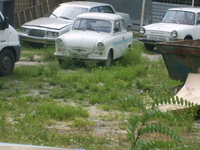 Az a Wartburg eredetileg csolnoki volt, utána került be Esztergomba a képen látható kereskedésbe, murvás nepperékhez. Én legalább 3 évig jártam az öregasszony nyakára Csolnokra, hogy ne 200ezerért adja azt a "roncsot". Hajthatatlan volt, egy robogót akart cserébe. Amúgy végig garázsban állt, de mióta kikerült a kereskedésbe, sokat romlott az állapota. Azóta már egyik autó sincs ott, lehet elbontották őket. Amúgy a rózsaszín autó azért rózsaszín, mert egy pornófilmben szerepelt.