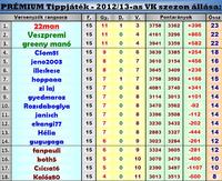 Kb. 10 perce vettem észre, hogy cseréltél, amikorra már kiszámoltam a csodacsapatot és a prémiumot is! Hát mit mondjak, nagyon meglepett, hogy Sliccest cserélted le, sajnálom, hogy ezen múlt a prémiumbeli szakaszgyőzelmed! :(