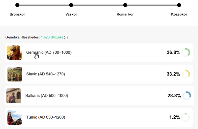 A myheritage behozta az osi eredet es most neztem meg eloszor a sajat es edesapam genetiaki tavolsagat. Es apukamnal eleg meglepo, hogy mennyire a nemet/osztrak populacio fele van eltolodva. Az o osszes ismert ose a 18 szazad eleje ota egy pest megyei magyar faluban eltek. Es a DNS talalatok alapjan (ahol a kozos osoket vissza tudtuk fejteni) sem tunik ugy hogy 2-4 generacion belul arra jart volna egy snajdig nemet ifju.... Lehet a falu valahonnan a nyugati hatarszelrol lett ujratelepitve a torok kor utan.