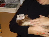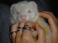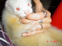 Magamról annyit, hogy ajánlásra jövök:-), és tavaly július 9-én költözött életünkbe a káosz, Joey személyében, aki egy albínó görény. Az addig nyugodt kis életünk hirtelen viharrá, mit viharrá, orkánná változott, a szörnyeteg szelídítésre szorult, mi kötszerre... De azóta vagyok igazán BOLDOG!!!:)