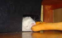 Sikerült venni kis műanyag csipogós egeret is. Sajnos ezzel nem játszanak, de azért sikerült kitalálni egy felhasználási módját. Ha csipogtatjuk eszeveszett sebességgel jönnek oda hozzánk :)