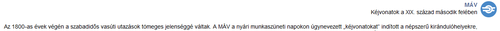 A vonatközlekedés ekkorra már szinte a csúcspontjára ér: tisztaság, pontosság, többféle osztály, elegáns, udvarias kalauzok, nívós utasellátás jellemezte az akkori MÁV-ot, ahol rang volt dolgozni.