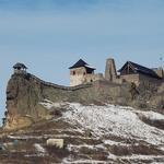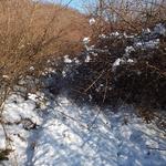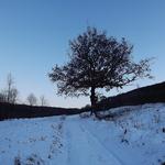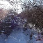 Jóval 12 óra után jöttem le a várból és vágtam neki a lényegi túrának. Bő fél óra alatt át is értem Arkára. A csendes kis faluban nem sok mozgás volt. A falu után a gyümölcsöst elhagyva kezdődtek a bajok. A pár centis hó még első ránézésre nem tűnt annyira gáznak, de utána egyre csak jöttek az akadályok. Pár száz méter múlva az úton keresztbe volt bedőlve egy full szúrós bokor, mindkét oldalról megkerülhetetlen volt. Mondok ok, lemegyek a patakhoz ott hátha jobban tudok haladni. Hát nem. Visszatértem az útra és percekig tartó megoldáskeresés után, azt csináltam, hogy a bokortól jobbra egy fadarab segítségével a kevésbé sűrű dzsungelben vágtam magamnak utat. Nagy nehezen kijutottam a bokor túloldalára behajolva és táskát vonszolva. Aki majd utánam arra jár használja egészséggel és szélesítse, mert nekem úgy tűnt, hogy nyáron sem fog sokkal kevésbé útba lenni a szúrós bokor az úton. Később is voltak letört behajlott ágak és bokrok a hó és a jég miatt ugye.