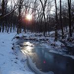 Szívás volt a köbön. Bújtam a térképet abból kiderült, hogy a Bónyi kút előtt majd jobbra kell letérnem tehát a patak jobb oldalára kellett átjutnom és kitartanom azon az oldalon végig. Találtam nagy nehezen egy helyet ahol kidőlt fákon keresztül át tudtam menni a jobb oldalra. Semmi gond nem volt ameddig a jobb oldalon volt az út, de amikor nem ott volt akkor a hegyoldalban kellett haladjak legtöbbször az őzek által kijárt nyomokban bokáig érő hóban. A cipőm szépen lassan feladta a hóval szembeni harcot (+felülről is folyt bele a hó), a zoknim teljesen átvizesedett. Egy élmény volt így...akarom mondani kínlódás. A havas táj meg erdő az szép volt a naplementében. Álmodoztam már havas túráról de a realizálódást nagyon nem így képzeltem el. A Bónyi kút előtt a hegyoldal full havasan fincsi volt. Utána kellemes meglepetésként természetesen még egyszer át kellett mennem a patak túloldalára, hogy Mogyoróskára érjek. Száz méteres kitérőket kellett így tennem mire találtam alkalmas helyet az átkelésre ismételten kidőlt fák segítségét vettem igénybe. Ekkor már 0 volt a túrázókedvem.
